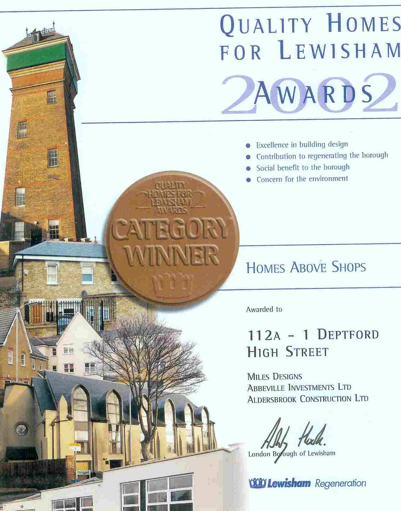 112a, Deptford High Street, Deptford, London Award winning design Award Project This award winning scheme by Miles Design created twelve one-bed and two-bed flats in what was once the warehouse and staff rooms of a 1950’s Woolworth’s store in Deptford High Street.